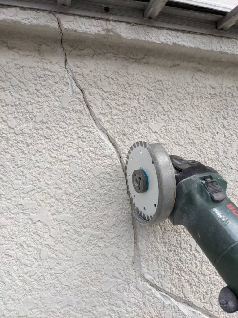 クラック(ひび割れ)は、幅によって補修方法が異なります。写真で実際の補修工程を見ながらお知らせします。